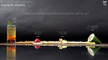 - Eating the distance a joué avec le placement des plats dans la pièce, selon le degré de localité des ingrédients. Il fallait aller dans la pièce d'à côté pour manger le pudding au tapioca, en raison de ses ingrédients exotiques.