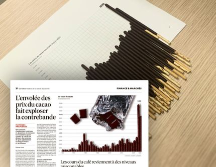 Depuis plusieurs années, “Les Echos” est l’un des rares média français à proposer des photovisualisations, cette technique qui consiste à créer des graphiques avec de vrais objets photographiés. Des Mikados pour le cours du cacao, du comté pour les exportations de fromage, des smarties pour Blackrock… Comme les aliments sont souvent au cœur de ces mises en scène, nous sommes allés demander à Jules Grandin ses 5 conseils pour réussir une « photoviz ».