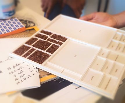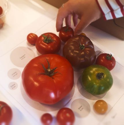 🍅 Les tomates : il y en a des vertes, des rouges, des jaunes, c’est super joli visuellement – mais l’idée de faire un graphique en tranches de tomates, qui nous paraissait évidente au premier abord, a été abandonnée face à la dure réalité des tranches ramollies par la chaleur. Au final, on a gardé les tomates entières et on a rapporté des brumisateurs pour mettre des gouttelettes. Ça a tout changé car ça rajoutait une sorte de relief, de 3D, on voyait mieux les volumes.