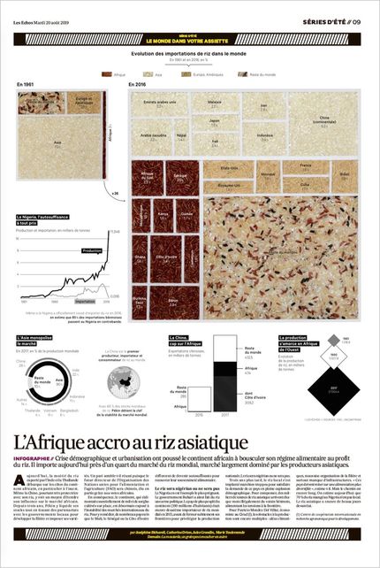 La photoviz, ça permet de faire une sorte de featuring avec le service photo. Nous avons des services assez similaires, mais nous travaillons finalement rarement ensemble. Donc cette co-création est très stimulante. Pour la série d’été, nous avions organisé des “triplettes” : un éditeur du service infographie pour définir l’angle et chercher les données, un graphiste pour réaliser les graphiques, et un membre du service photo pour mettre en scène la prise de vue et faire les réglages du studio.”