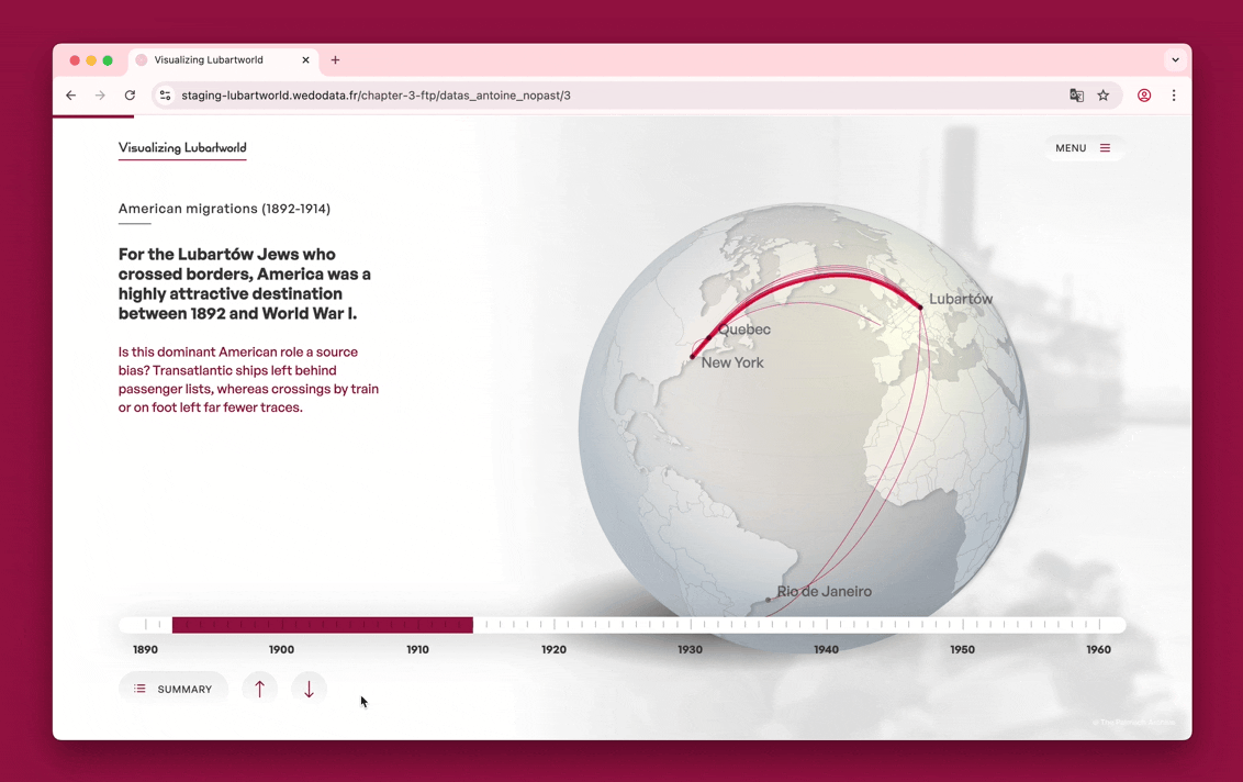 "Scrollyquoi ??" est souvent la première réaction de celles et ceux qui ne connaissent pas, tandis que d'autres plus habitués soupireront "Encore un !" Le scrollytelling s'est imposé comme un format maître de la narration de données car il a le mérite de suivre un fil qu'on ne lâche pas. L'avantage ? On maîtrise parfaitement le fil conducteur, on place les données exactement où il faut, on raffine pour que ce soit une expérience sans accroc. L'inconvénient ? Il faut que ce soit écrit comme un storyboard : à chaque dizaine de pixels scrollés, il faut son événement et il faut accepter un format sans chemin de traverse. Popularisé par les médias dans les années 2010, ce format exploite le geste naturel du scroll pour créer une immersion narrative unique.