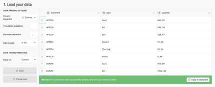 1/ Charger vos données : il prend les formats TSV, CSV, DSV ou JSON (attention à bien indiquer le séparateur des décimales !).